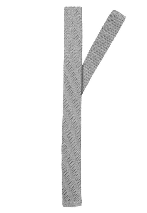 Corbata tejida de seda color gris platinado con textura rayada